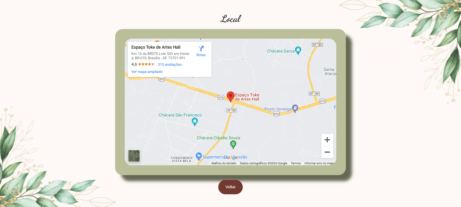 <li><strong>Informações do Evento:</strong> Exibição da data, hora e local do casamento, garantindo que todos os detalhes importantes estejam facilmente acessíveis.</li>