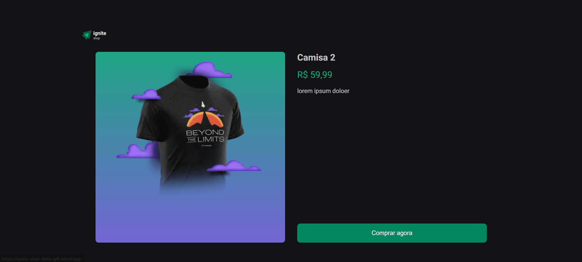 <p>Durante o curso Ignite da Rocketseat, desenvolvi uma loja de camisas online. Este projeto teve como objetivo aplicar conhecimentos avançados em desenvolvimento web, criando uma aplicação completa e funcional. As principais características da loja incluem:</p>