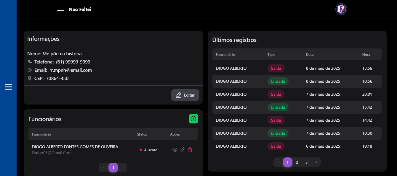 Não Faltei combina tecnologia moderna, acessibilidade e praticidade para transformar a forma como empresas gerenciam presença e pontualidade. É um exemplo de como uma necessidade real pode se tornar uma solução digital de valor público.